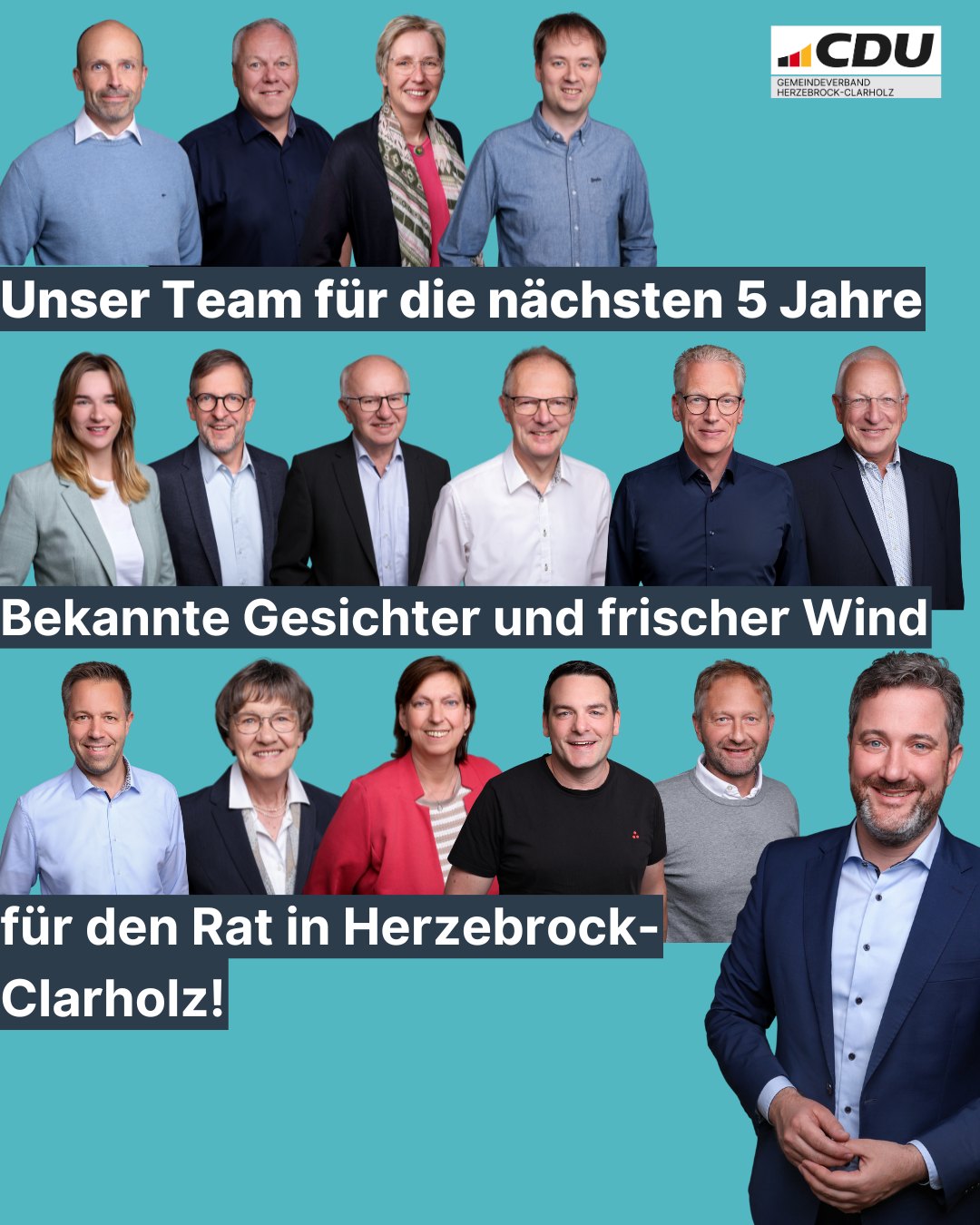 mehr15 Mandate ? die CDU bleibt stärkste Kraft in Herzebrock-Clarholz! Danke für das Vertrauen bei der Kommunalwahl 2025. Gemeinsam mit euch starten wir im November in die kommenden fünf Jahre Ratsarbeit. Unser Team im Rat: Norbert Große Siestrup, Reinhard Neuhaus, Beate Hanfgarn, Annika Mainka, Martin Peters, Thomas Freitag, Bernhard Petermann, Norbert Ahlke, Bernd Feldmann, Bernhard Nickel, Christoph Laukötter, Walburga Falkenreck, Gisela Ginten-Hoffmann, Michael Hagedorn und Stefan Frenzel. Dazu kommt der alte und neue CDU Bürgermeister Marco Diethelm Bei Anliegen sprecht uns gerne an oder schreibt uns! Wir haben Lust! #HerzebrockClarholz #Kommunalwahl2025 #CDU
