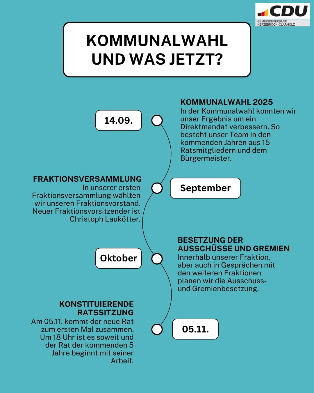 mehrDanke für das Vertrauen! Die Kommunalwahl liegt hinter uns ? wir bleiben stärkste Kraft und gehen mit einem starken Team in die nächsten 5 Jahre Ratsarbeit. Glückwunsch an alle neuen und alten Ratsmitglieder und ein großes Dankeschön an alle Kandidaten und Wahlkämpfer für ihren Einsatz. 👏 Hinter uns liegen Wochen voller Gespräche, Ideen, Wünsche und Kritik ? all das nehmen wir mit für unsere Arbeit. Besonders freuen wir uns über die starke Bestätigung von @marco_diethelm als Bürgermeister, zwei Stimmen für Herzebrock-Clarholz im Kreistag mit Christine Disselkamp und Dr. Heinz-Josef Sökeland sowie eine neue und kräftige Stimme im Landratsamt mit @inalaukoetter . 🙌 Los geht´s! Zusammen für unsere Gemeinde! #Kommunalwahl #CDU #Danke #HerzebrockClarholz